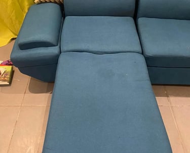 Le même canapé, fraîchement nettoyé, retrouve son éclat et sa douceur, prêt à accueillir à nouveau votre famille.